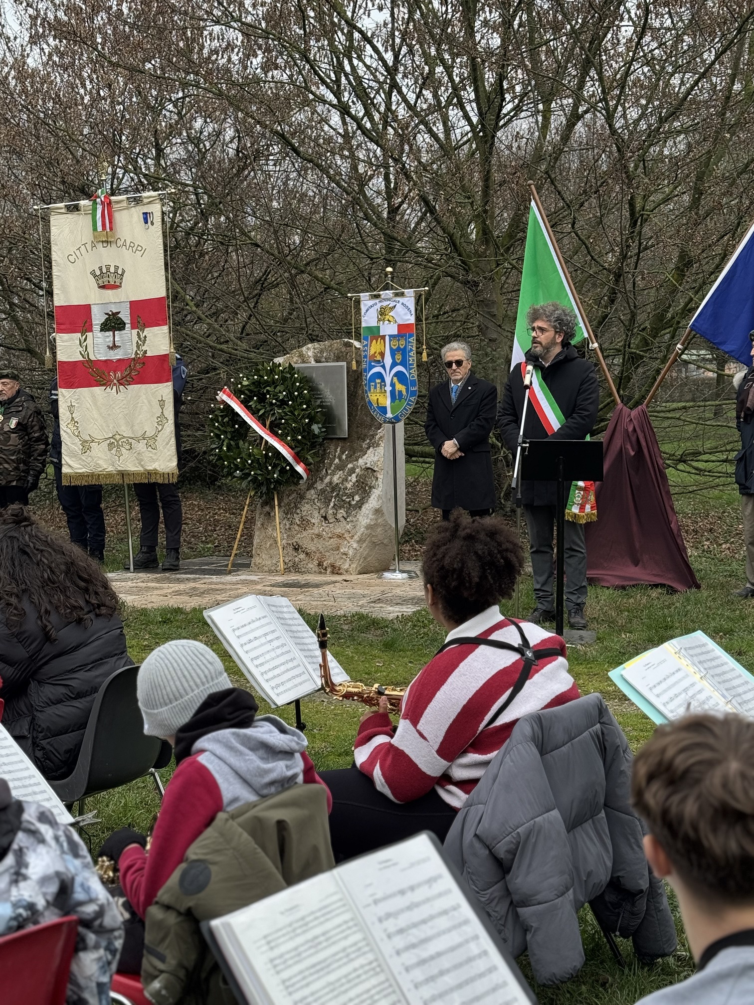 Alla cerimonia sono intervenuti Sergio Vascotto, presidente del Comitato provinciale di Modena dell’Associazione nazionale Venezia Giulia Dalmazia, e il sindaco di Carpi Riccardo Righi. Presenti anche la sindaca di Campogalliano Daniela Tebasti, il sindaco di Novi Enrico Diacci, rappresentanti delle associazioni. La celebrazione è stata accompagnata dalle musiche eseguite dal Corpo bandistico Città di Carpi e dall’Orchestra della scuola Alberto Pio.