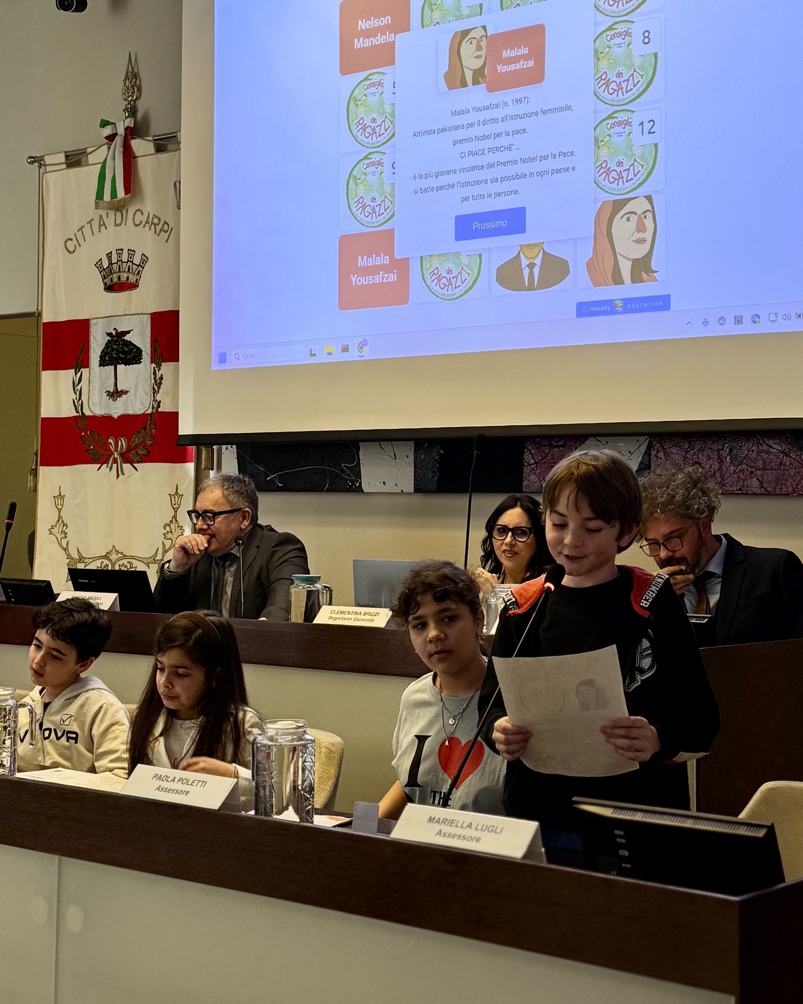 Ad aprire l’assemblea consiliare, che si è tenuta martedì 7 aprile nella sala consiliare, è stata una rappresentanza del Consiglio comunale dei ragazzi e delle ragazze: i giovani consiglieri e consigliere hanno coinvolto i loro colleghi adulti in un gioco, un memory, che ha offerto l’opportunità di ricordare le storie di persone capaci di agire in prima persona per cambiare le cose, da Gandhi a Malala Yousafzai, da Nelson Mandela fino al primo sindaco di Carpi Bruno Losi. Ragazzi e ragazze sono stati accolti “come segno di fiducia e speranza nel futuro” dal presidente del Consiglio comunale Andrea Artioli che, nel discorso di apertura dell’assemblea, ha ricordato anche Maria Podestà, unica donna eletta in Consiglio in quella prima elezione amministrativa alla quale è dedicata la sala consiliare, insieme all’80° anniversario della nascita di Udi e Cif, sottolineando il contributo e l’impegno delle donne carpigiane nella politica, nell’economia e nello sviluppo della società.
