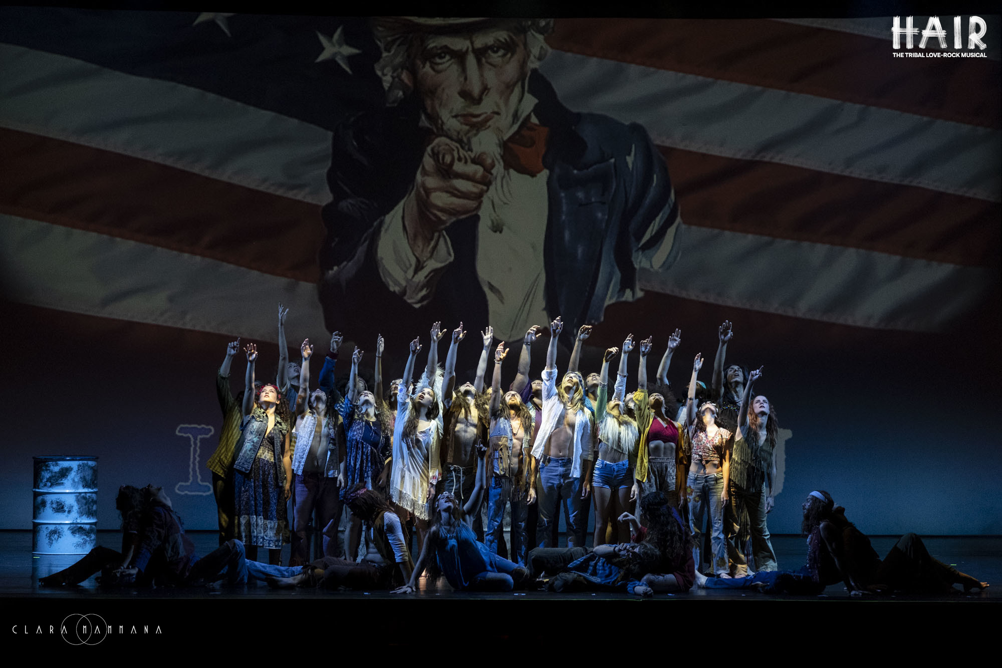 Questa nuova edizione del musical, produzione di Mts Entertainment in collaborazione con Teatro Carcano, rende omaggio all’opera rock simbolo del pensiero hippie che infranse ogni schema. Non vuole, però, essere un’operazione nostalgica ma un momento di riflessione sociale. Lo spettacolo, infatti, tratta temi come la libertà sessuale, che i protagonisti esprimono con una sincerità che sfida le convenzioni sociali, sottolineando l’idea che l'amore e la libertà di espressione siano risposte potenti alla violenza e all’oppressione; l’uso delle droghe, che inizialmente sembrano offrire una fuga dalla realtà, invitando il pubblico a una considerazione critica sull’illusione di libertà che queste propongono e riconoscendo che la dipendenza è una forma di schiavitù. E, infine, la guerra, come evidenzia Simone Nardini nelle note di regia: “Oggi, come allora, esistono ancora tanti Vietnam e tanti giovani con la voglia di liberarsi dalla schiavitù commerciale della società. Hair, the tribal love-rock musical, coinvolgerà ancora le platee dopo oltre cinquant’anni anni dal suo debutto a Broadway in un momento storico sicuramente più difficile di quello narrato. Quante guerre sono state combattute dopo il Vietnam? Quante guerre sono in corso oggi nel mondo?”.