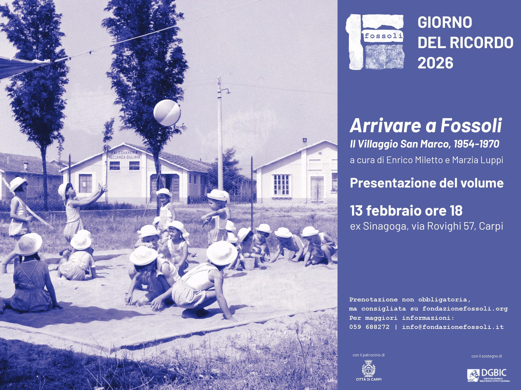 In occasione del Giorno del Ricordo, la Fondazione Fossoli promuove la presentazione del volume "Arrivare a Fossoli. Il Villaggio San Marco, 1954-1970" a cura di Enrico Miletto e Marzia Luppi.