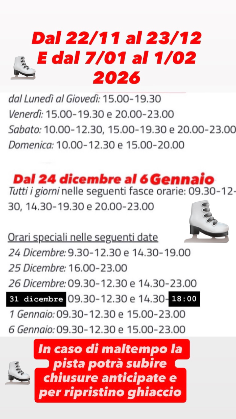 Orari della pista di pattinaggio in allegato