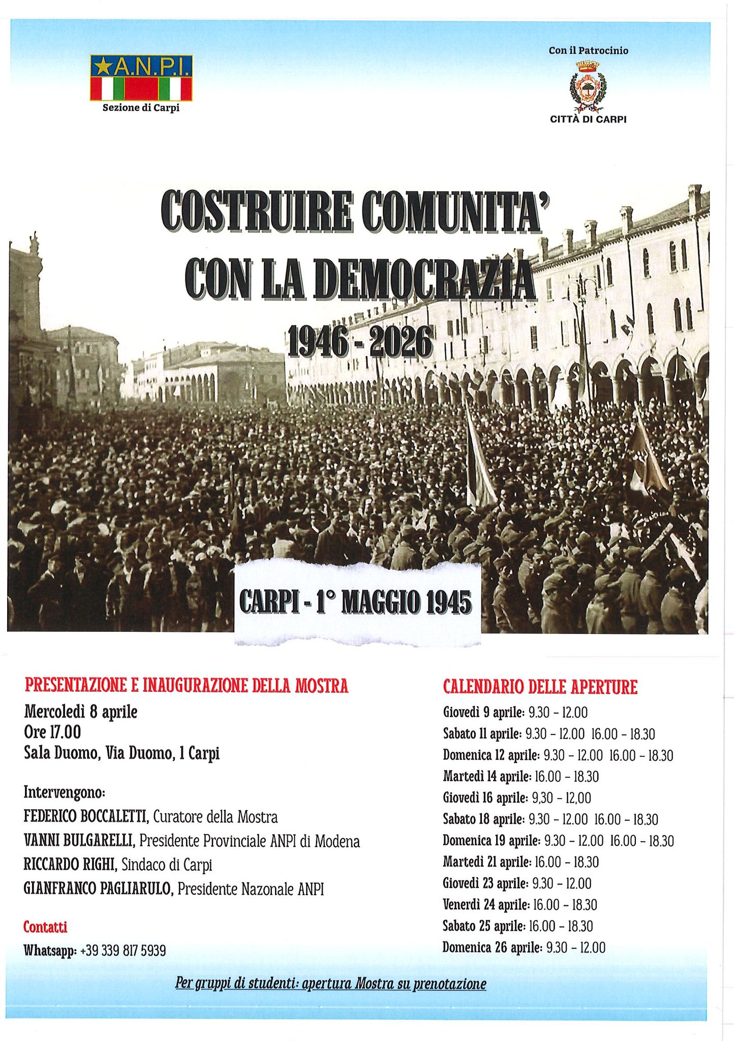Inaugurazione e presentazione Mostra: "Costruire Comunità con la Democrazia" 1946-2026