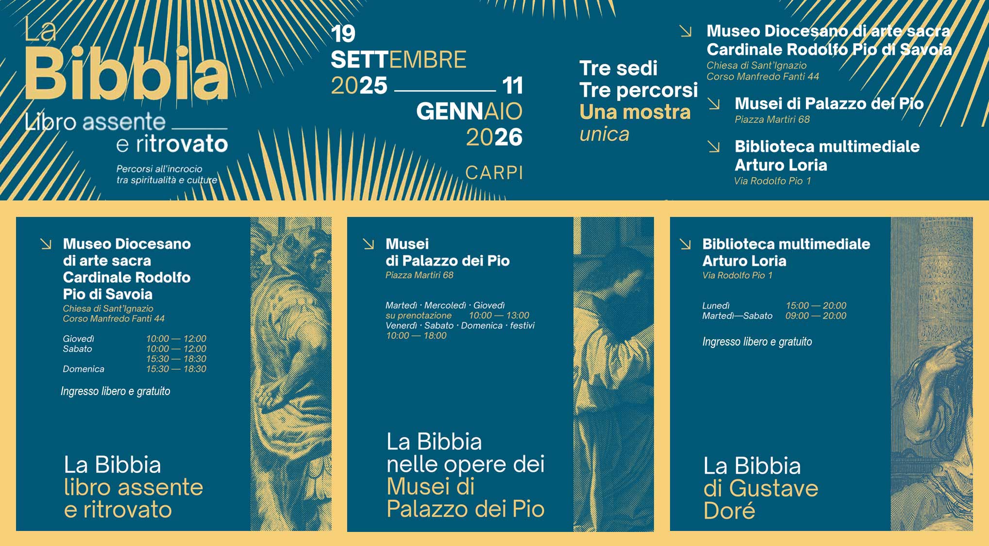 Tre sedi, tre percorsi, una mostra unica.