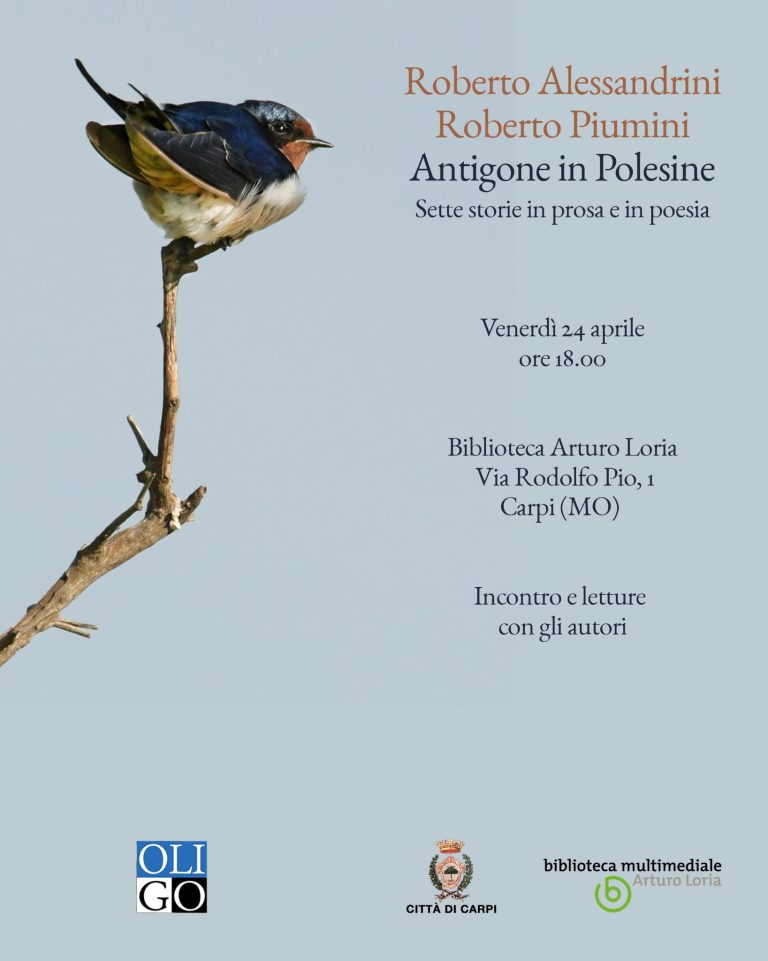 DescrizioneVenerdì 24 aprile alle ore 18.00 presso Biblioteca Loria, presentazione del libro Antigone in Polesine. Con gli autori Roberto Alessandrini e Roberto Piumini